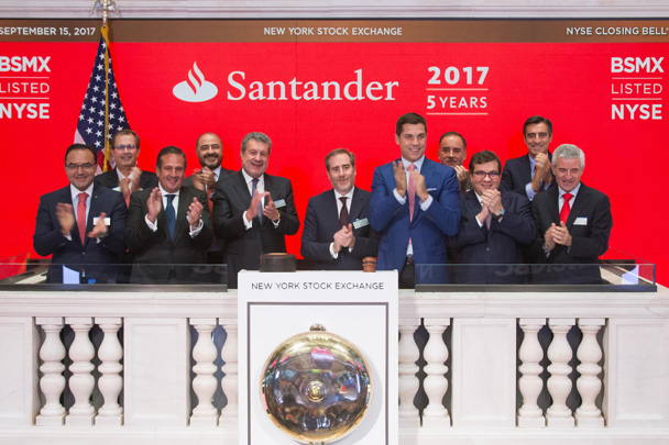 El 26 septiembre de 2012, Grupo Financiero Santander México protagonizó en esa misma sede su salida a bolsa, y días después completó su colocación en la Bolsa Mexicana de Valores, siendo desde entonces, la única institución financiera de México listada en ambos mercados, eventos en los que colocó el 25.3% de su capital social, con un aproximado de 1.7 millones de acciones vendidas.