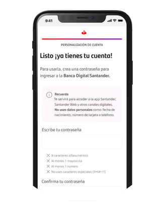 Crea tu contraseña para la app Santander.
