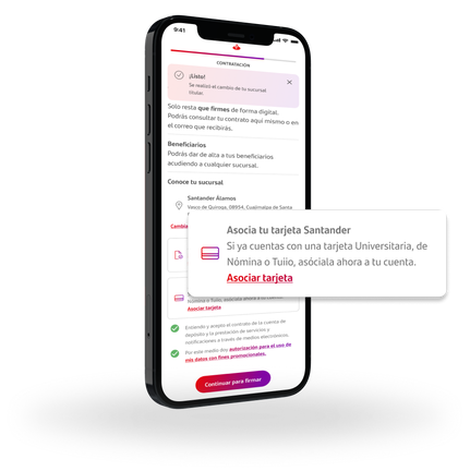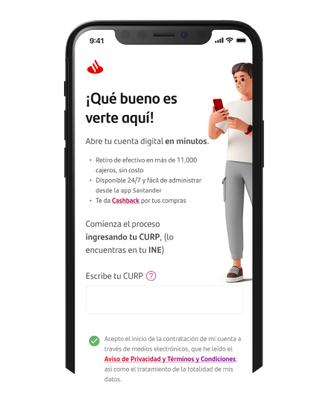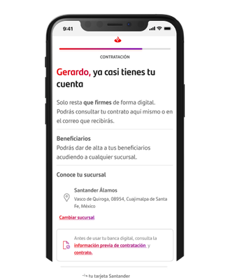 Descarga la app Santander, accede con tu No. Cuenta / Código de cliente (estos datos vienen en el contrato que recibiste por correo) o No. Tarjeta y contraseña registrada cuando abriste la cuenta.