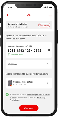 Acude a tu sucursal Santander más cercana y apertura la cuenta a donde podremos realizar tu portabilidad de nómina.