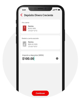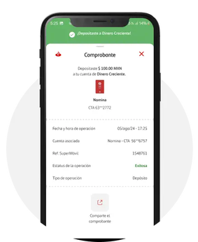 Dinero Creciente es un atributo asociado a tu cuenta que puedes utilizar desde app Santander y es prestado por Banco Santander México S.A., Institución de Banca Múltiple, Grupo Financiero Santander México. Para mayor información sobre los requisitos, comisiones y condiciones de contratación de los productos y servicios de Santander, así como nuestro Aviso de Privacidad consulta www.santander.com.mx