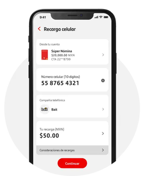 Ingresa el número de celular, compañía telefónica y monto.