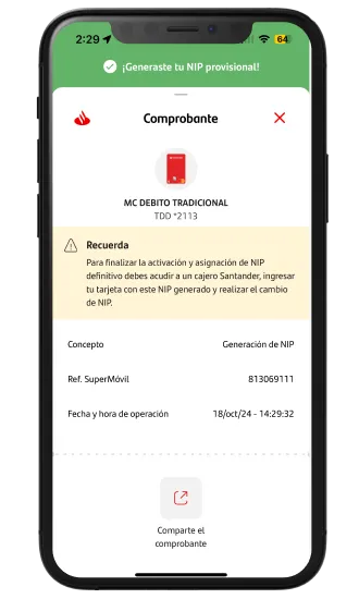 ¡Ya generaste un NIP provisional! Finaliza el proceso cambiándolo en un cajero Santander.