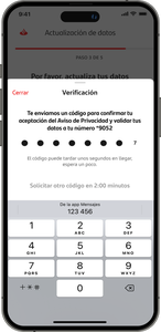 Confirma ingresando el código de 8 dígitos que recibiste vía SMS. Recuerda no compartirlo.