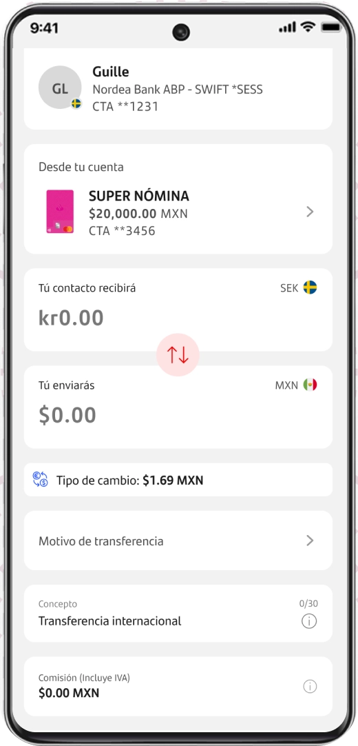 Conocer los datos de la persona a la que desees hacer una transferencia internacional