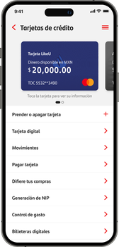 Selecciona tu tarjeta de crédito LikeU.